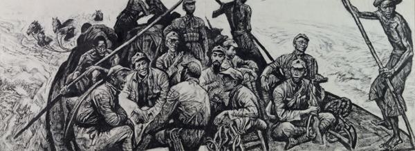 【油画《飞夺泸定桥》刘国枢作品,1959年】这幅《飞夺泸定桥》再现的就是镶嵌在中国革命史册之中的这一幕场景。